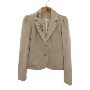 Vintage Y2K Old Navy Wool Tweed Blazer M Beige Embellished Collar Academia Prep