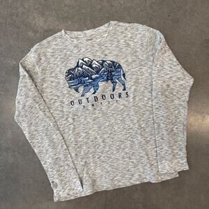 Vintage Y2K Outdoor Awaits Buffalo Mountains Long Sleeve Gray Pullover Knit XL