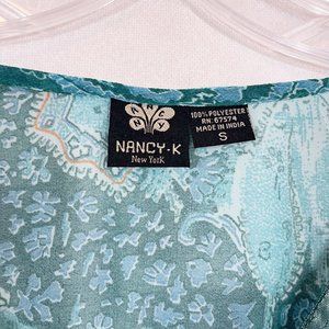 Vintage Y2K Paisley Print Sheer Long Sleeve Blouse Boho Indie Bohemian SMALL