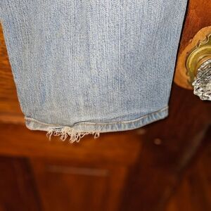 Description: Y2K-era Paris Blues juniors flare jeans in size 11, light stone wash, low-rise with ribbed stretch at back yoke