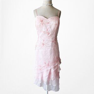 Vintage Y2K Pastel Pink Floral Beaded Knee Length Bodycon Prom Dress Size XL/XXL