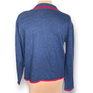 Vintage Y2K Patriotic Zip Cardigan Sweater Navy Blue White Stripes Red Americana