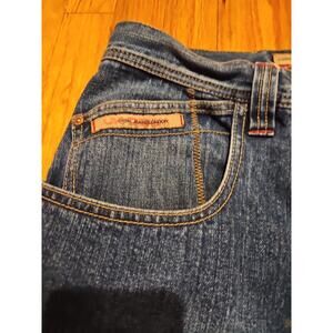 This Vintage Y2K Pepe Jeans Men's Loose Fit Baggy Wide Leg Denim Skater in size 40x32 features a relaxed fit with a wide-leg style, perfect for a casual and comfortable look. Made from cotton denim, these jeans have a zip closure, 5-pocket design, and embroidered logo accents. The medium wash and solid blue color add a grunge and 90s hip hop vibe to your wardrobe. Machine washable for easy care, these jeans are a comfortable and stylish addition for any season.