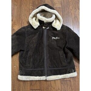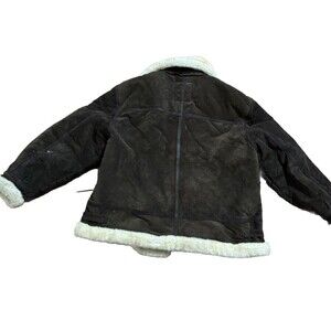 Vintage Y2K Phat Farm Size 3xL Shearling Suede Leather Bomber Aviator Coat BROWN