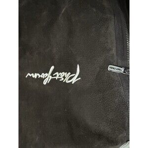 This vintage men's Phat Farm jacket is crafted from brown suede leather with faux shearling fabric, featuring a stand-up collar and buckle accents. It has a zip closure and is size 3XL, suitable for fall weather and all seasons. Handmade in the 1990s, this jacket showcases the iconic Phat Farm style and character, making it a unique addition to any wardrobe for business or casual