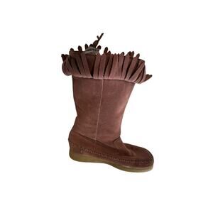 Vintage Y2K Pink Fringe Women’s Midi Boot Beaded Report Dubais Size 7 Boho Festival Leather suede dusty rose flat heel