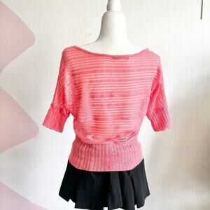 Vintage Y2K Pink Mesh Batwing Sleeve Top, 2000s‎ Retro Clubwear Small