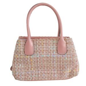 Vintage Y2K Pink Tweed Small Handbag Double Rolled Handles Barbie Pink 90s