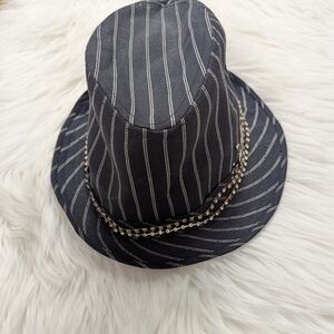 excellent used condition. size large. vintage 2000s playboy fedora. black with white stripes and rhinestone gem bling around the brim.