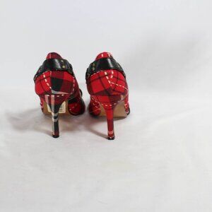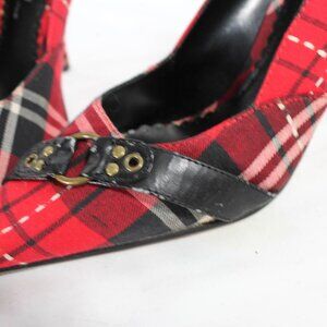Vintage Y2K Pointed Toe High Heels Red Tartan Plaid Size 7 1/2 Punk & Emo Goth