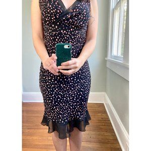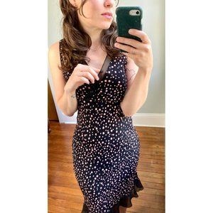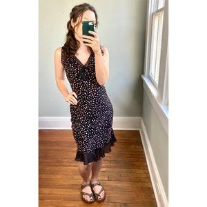 Vintage Y2K Polka Dot Black Pink Sleeveless Frilly Romantic Ruffle Dress M