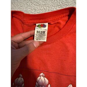Classic vintage short sleeve t-shirt in red featuring a Texas bluebonnet graphic by Polly's Paint Box. Relaxed fit, crewneck design — ideal for Y2K collectors, Texas enthusiasts, or anyone who appreciates unique retro floral prints.