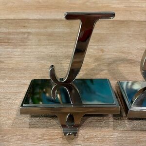 Vintage Y2K Pottery Barn "JOY" Chrome Christmas Stocking Holder, Set of 3