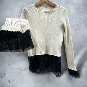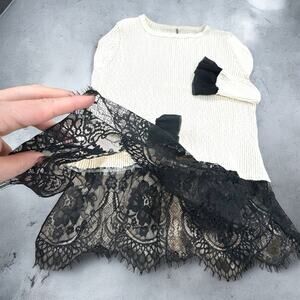 Vintage Y2K Practical Magic Black Lace Cream Whimsigoth Grunge LONG SLEEve
