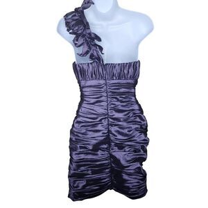 Prom Mini Ruched Dress One Shoulder Strap Womens Size 2 Purple