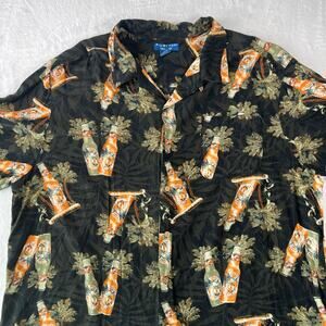 Vintage Y2K Puritan Beer And Cigar Print Button-Up Short Sleeve Shirt 2XL