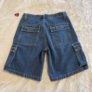 Vintage Y2K Purple Heart Cargo Carpenter Denim Shorts Women's Size 7/8 Blue