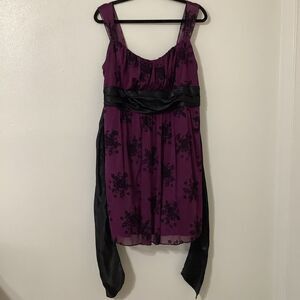 Trixie VTG 2000s Whimsygoth Witch Dark Romantic Dark Fairy Aesthetic Purple Black Satin Sash Mesh Overlay Dress