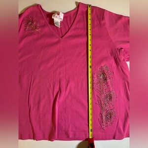 Vintage Y2K Quacker Factory pink v-neck rhinestones tshirt sz3X retro casual