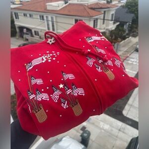 Vintage Y2K Quacker Factory red gold stars embroidered flags zip up hoodie sz 1X