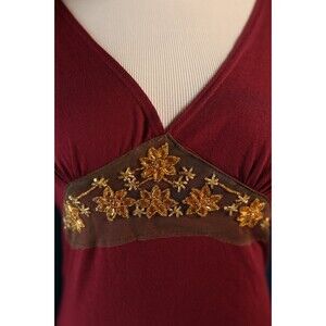 Vintage Y2K R. Tease Babydoll Maroon Gold Sequin Flutter Sleeve Fairy Top Large