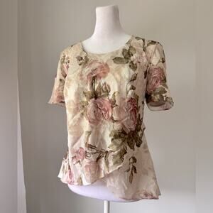 Vintage Y2K R&M Richards Petite Cream Floral Print Short Sleeve Blouse