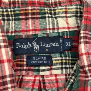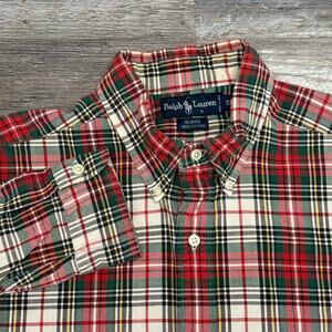 Vintage Y2K Ralph Lauren Blaire Red Green Tartan Plaid Mens XL Button Down Shirt