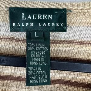 Vintage Y2K Ralph Lauren LRL Tan Brown Striped Linen Blend Sweater Large Western
