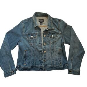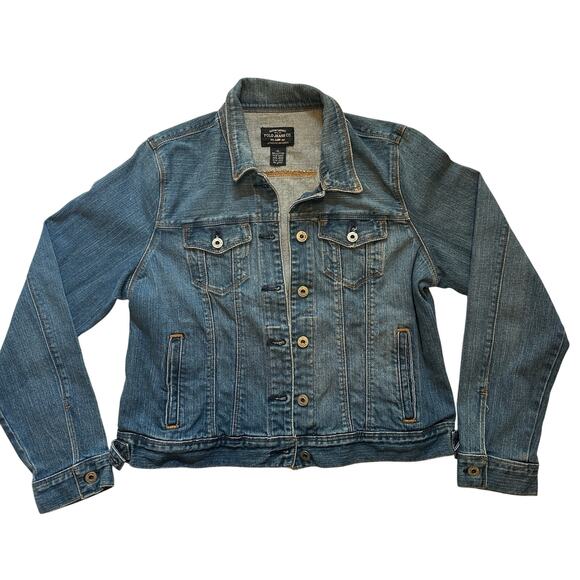 Brand Ralph Lauren Polo Jeans Co, Women’s denim jacket, Size XL, 99% cotton 1% spandex, Medium wash blue denim, Black label Authentic Dry Goods line with American flag tab, Polo Jeans Co RL 1967 engraved metal buttons, Button front closure, Two flap chest pockets, Two side welt pockets, Adjustable waist tabs, Assembled in Mexico, Classic 90s–Y2K style perfect for concerts, festivals, travel, weekend casual wear, layering over dresses or tees, and retro streetwear looks