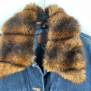 Vintage Y2K Ralph Lauren Trucker Jean Jacket Removable Faux Fur Collar Quilted S