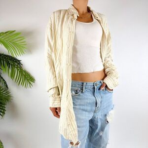 Vintage Y2K Ralph Lauren Cream Coastal Granola Girl Oversized Striped Button Up Shirt