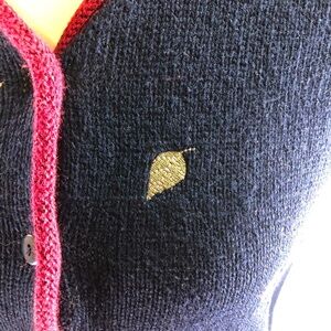 Vintage Y2K Ramie Cotton Embroidered Knit Vest Sz S Navy Burgundy with metallic leaves