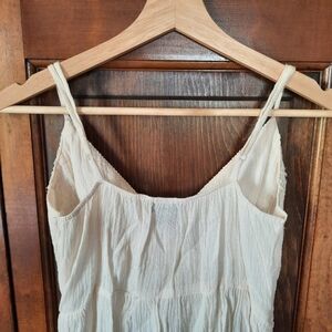 Vintage Y2K Rave 100% Cotton Boho Festival Cream Crochet Tunic Tank Top Size M. V-neckline with thin adjustable straps, crocheted neckline and bust, loose flowy fit, side zipper closure, and double lined chest. The ribbon woven into the crochet is twisted in places and side zipper has been repaired along seam. Otherwise, it's in good condition. Lightweight material 100% cotton. Size medium.