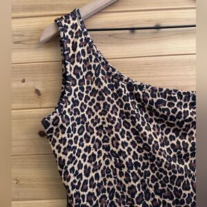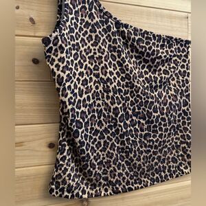 Vintage Y2K Rave Size Small One Shoulder Bedazzled Leopard One Shoulder Crop Top