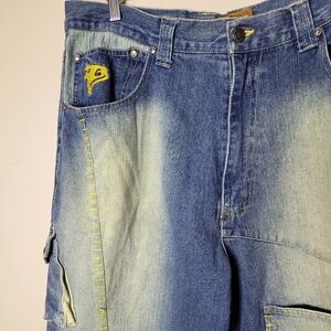 vintage jorts, baggy jorts, Vintage Raw Blue, men’s baggy denim shorts, Y2K streetwear, 90s skater shorts, hip hop baggy jeans, vintage Korea denim, embroidered logo patch, relaxed fit denim shorts, old school hip hop, retro street style, made in Korea shorts, Raw Blue jeans shorts, Y2K baggy shorts, skater denim shorts, 2000s streetwear, unisex jorts, wide leg jorts