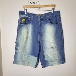 Vintage Y2K Raw Blue Baggy Denim Shorts Mens 38 Skater Hip Hop Streetwear Korea