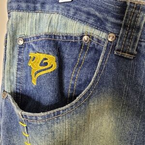 Vintage Y2K baggy denim shorts, straight out of the late '90s–early 2000s streetwear scene. Made in Korea from 100% raw cotton denim, these shorts serve up the ultimate old-school vibe with a relaxed, baggy fit and a stitched logo patch that screams classic.