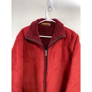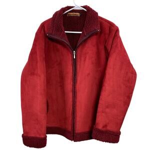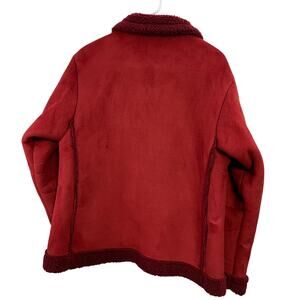 Vintage Y2K Red Faux Suede Sherpa Fleece Jacket Size L Cowgirl Western Outerwear