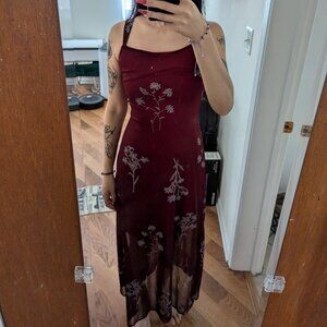Vintage Y2K Red Floral Mesh Maxi Dress