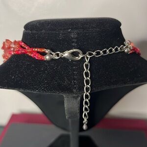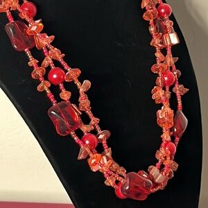 Red Glass Beaded 3 strand chocker necklace
