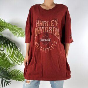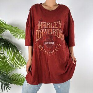Vintage Y2K Red Harley Davidson Indie Grunge Short Sleeve Baggy T-Shirt / 2XL