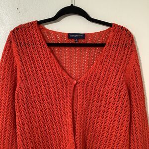 Jones New York VTG 2000s Beach Summer Casual Boho Aesthetic Orangey Red Single Button Cardigan Sweater