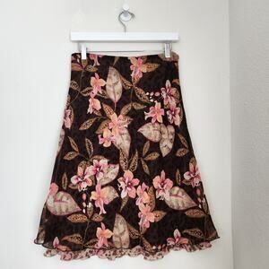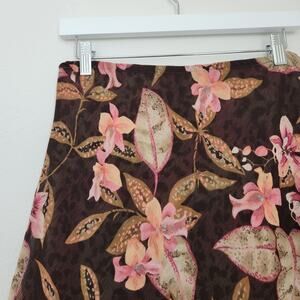 Vintage Y2K Reversible Bias Cut Floral Leopard Midi Skirt Pink Brown M
