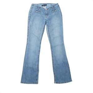 Vintage Y2K Revolt Jeans Co light wash blue denim low rise flare jeans 7