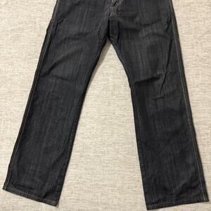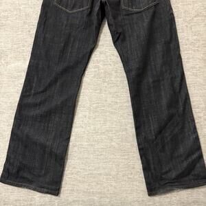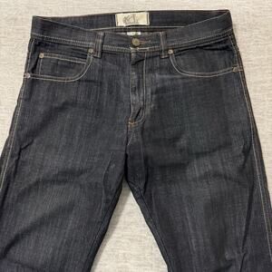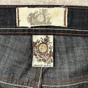 The Vintage Y2K Rich Kids Jeans Co Mens Blue Baggy Skate Jeans in size 36x32 are a unique and stylish addition to any man's wardrobe. Made of denim with a mid-rise and wide-leg style, these jeans feature a classic 5-pocket design and a zip closure. The dark wash and blue color add a touch of nostalgia to the vintage look, while the brand accents and logo give them a fashionable edge. Perfect for any season, these machine-washable jeans are comfortable and easy to wear.