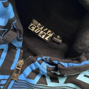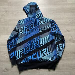 Vintage Y2K Rip Curl Surf Blue Black AOP Full Zip Hoodie Jacket Size Small