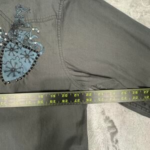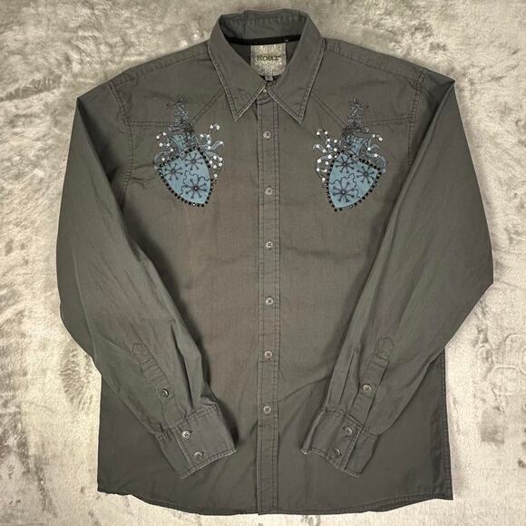 Vintage Y2K Roar Men’s Grey Embellished Western Cross Design Button-Up Long-sleeve Shirt Size Large