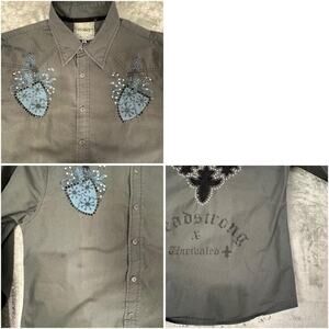 Vintage Y2K Roar Men’s Grey Embellished Western Cross Design Button-Up Shirt L
