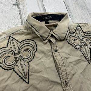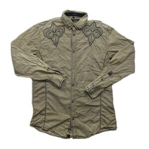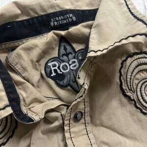 Vintage Y2K Roar Signature Embroidered Tan Long Sleeve Button-Up