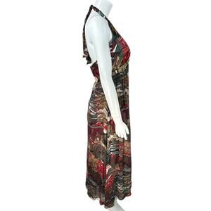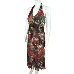 Vintage Y2K Robbie Bee Silk Maxi Halter Dress Size 8 Abstract Floral Fairy Maxi